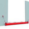 Lorsque la barrière n’est pas utilisée, elle est placée sur deux supports muraux.